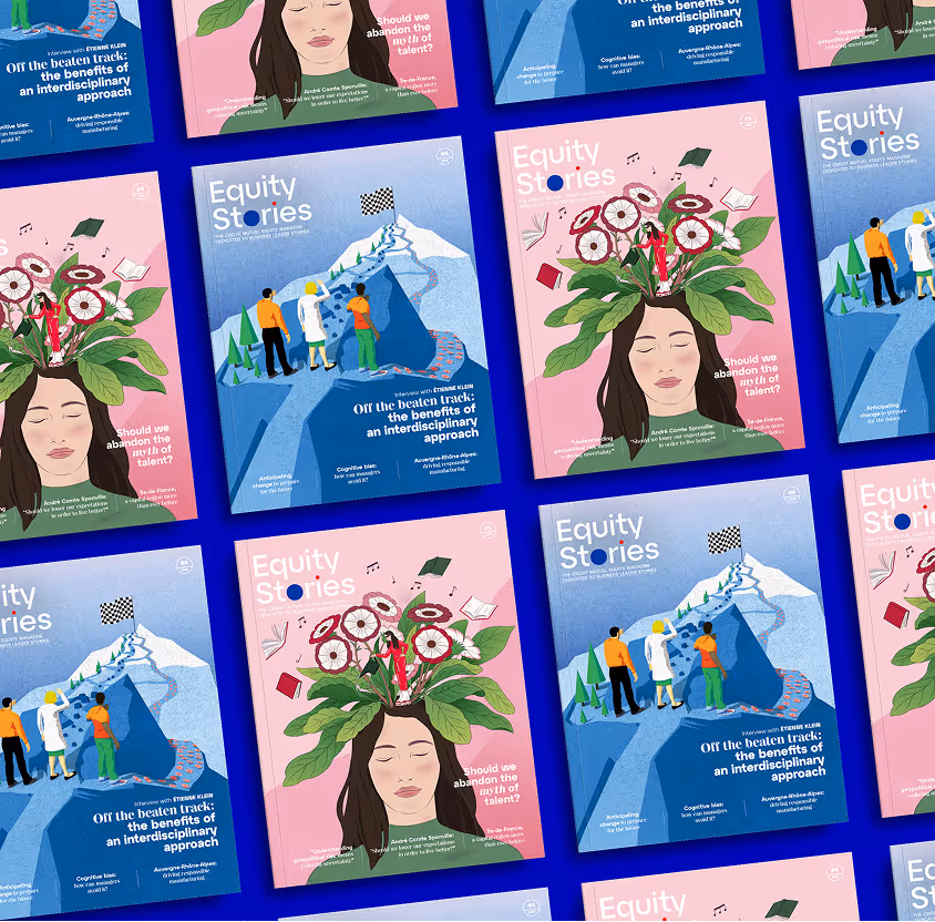 Nous avons créé Equity Stories, une revue bi-annuelle qui rompt avec les codes corporate. Récits authentiques, regards d'experts, univers graphique premium : chaque numéro devient une prise de parole stratégique, déclinée en anglais, en digital et sur LinkedIn.